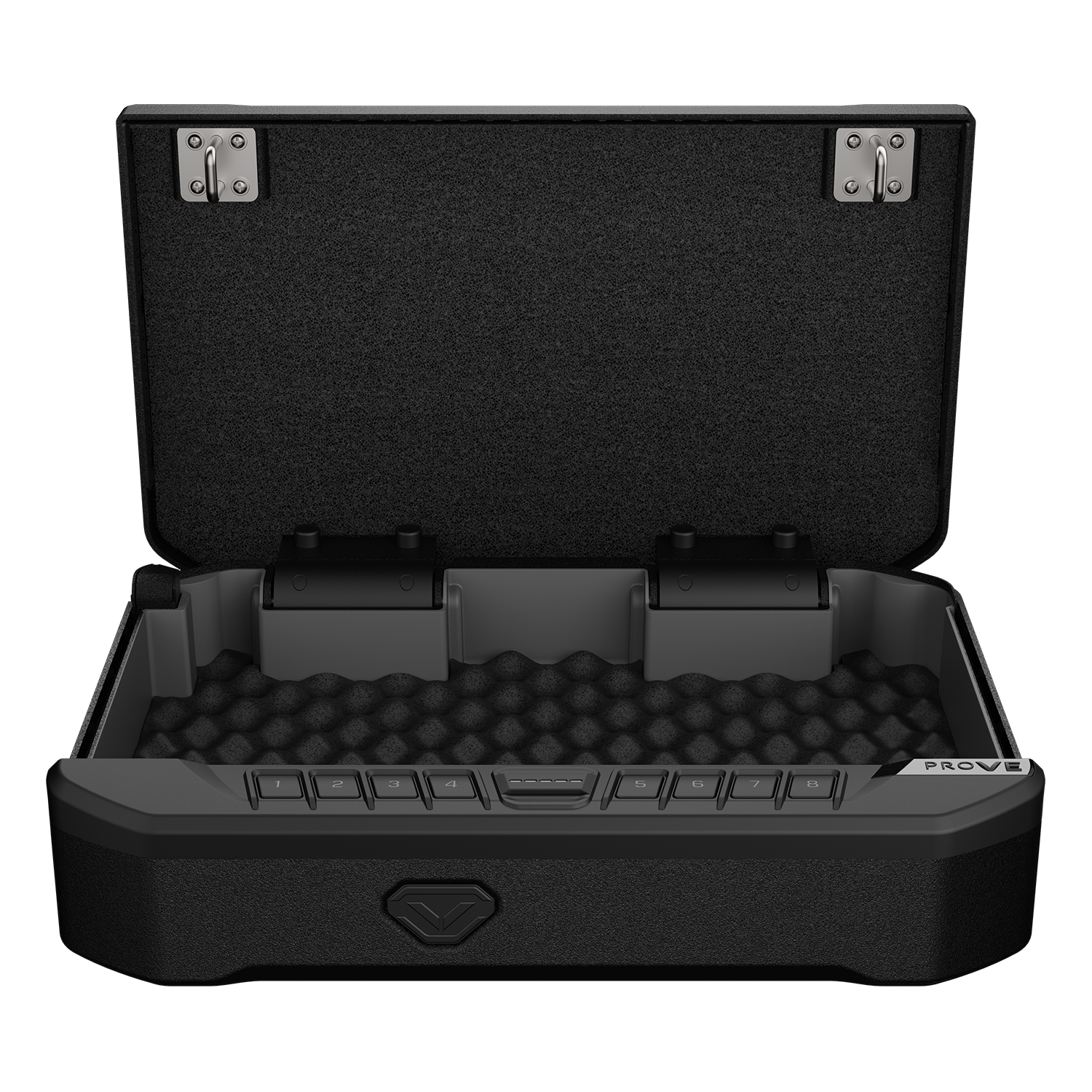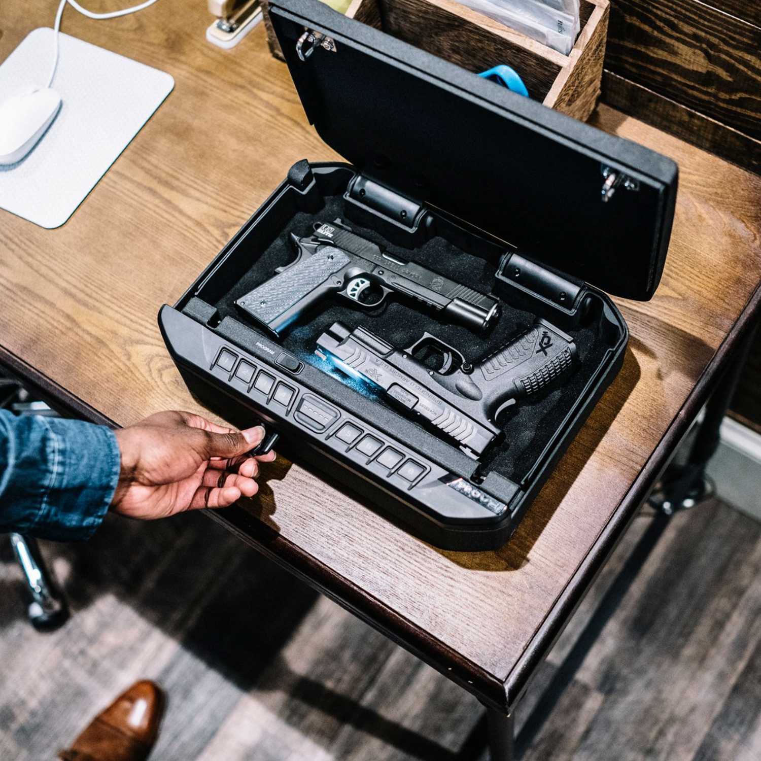 - Quick Access to your valuables, documents, and firearm(s) from the automatic opening lid and responsive LED lighting. Get in quickly when it matters most using the gaming inspired action of the auto-illuminating keypad with built-in proximity sensor, and included manual key.
